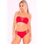 Verras je partner in dit verleidelijke sexy lingerie setje in het rood van Pink Lipstick en jij bent de aanleiding voor een spannende avond tussen de lakens. De tweedelige set is zeer rekbaar en heeft daardoor een perfecte pasvorm. De set is geheel naadloos en zal daardoor niet snijden in het lichaam. De top en string zijn strategisch gesneden op de heupen de rug in tussen de buste. De achterkant van de string is gemaakt van visnet gaas voor een sexy transparante look.