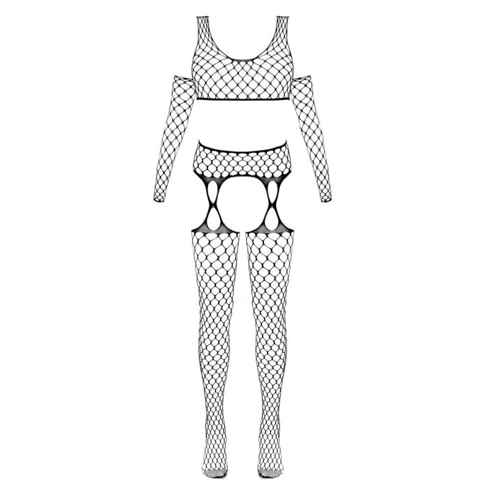Het 3-delige lingeriesetje Fantasy by Cottelli is ontworpen om al je fantasieën tot leven te brengen! Dit setje in een sensueel zwart met een trendy visnetstijl bestaat uit een kort topje, jarretelpanty en een paar stijlvolle armwarmers. Gemaakt van groot gaas, biedt het lingeriesetje een naadloze afwerking die niet alleen zeer elastisch is, maar ook zacht en soepel aanvoelt voor maximaal comfort. De jarretelpanty is open bij het kruis waardoor ze perfect zijn voor een spannende avond. Dit setje is niet alleen een lust voor het oog, maar ook een must-have voor elke lingeriecollectie!