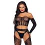 De 3-Delige Bodystocking Set - Zwart van Leg Avenue is een verleidelijke set uit de collectie van Leg Avenue. De bodystocking set bestaat uit een korte top, een jarretelpanty en een bijpassende string. De top, jarretelpanty en string zijn gemaakt van fijn geweven nylon. In het nylon zijn diverse structuren verweven voor een prachtig mooie look.