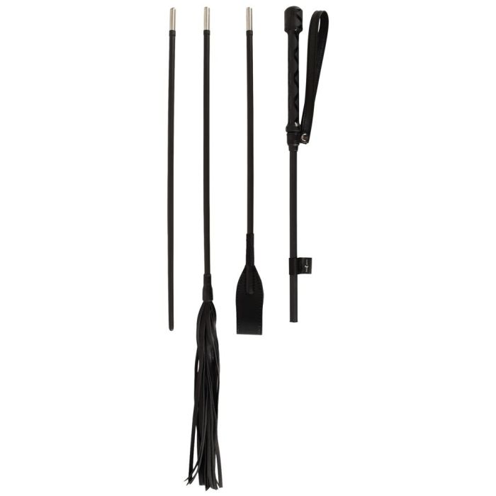De 4-Delige Zweepset van Bad Kitty is perfect voor zowel beginners als ervaren gebruikers die hun spel willen uitbreiden. Met een universeel handvat en drie verwisselbare zweepopzetstukken – een Flogger, crop en cane – kun je eenvoudig schakelen tussen verschillende sensaties. Het geribbelde handvat met bevestigingsband zorgt voor een stevige grip, waardoor je elke zweep met balans en precisie kunt hanteren. Of je nu kiest voor een zachte aanraking of een intensere ervaring, de ultralichte en flexibele opzetstukken bieden een breed scala aan mogelijkheden om je fantasieën te verkennen. Voeg een nieuwe dimensie toe aan je intieme momenten en laat je creativiteit de vrije loop met deze veelzijdige zweepset!