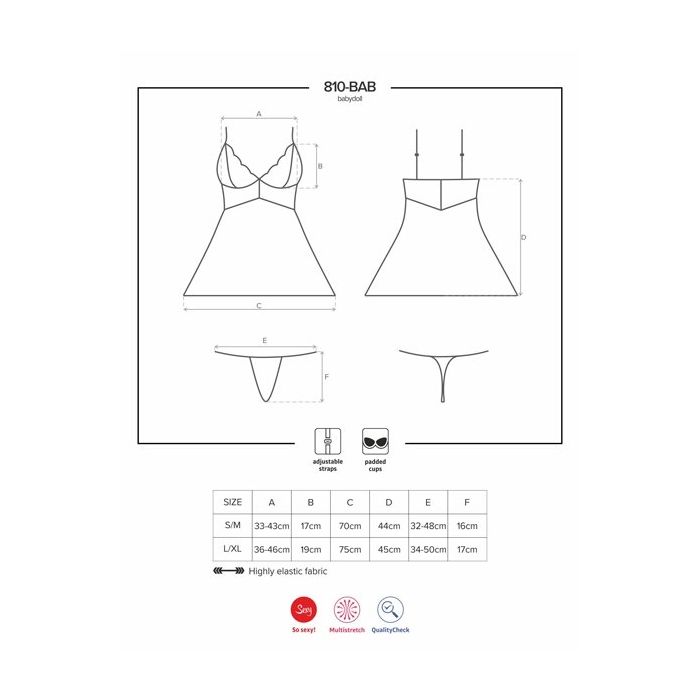 Ga de avond sexy van start met de 810 Babydoll en String - Wit van het merk Obsessive. Dit merk verpakt de artikelen als leuke presentjes die erg leuk zijn om cadeau te doen. Met de inhoud verpak jij jezelf als een prachtig en sexy cadeau. Deze tweedelige set bestaat uit een babydoll en een bijpassende string gemaakt van zachte en soepele materialen voor een perfecte en aangename pasvorm.