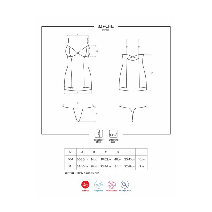 De 827 Chemise en String van Obsessive is een onweerstaanbare lingerie set die perfect is voor romantische avonden. Deze set bestaat uit een elegante chemise en een bijpassende string, vervaardigd uit hoogwaardige materialen die zorgen voor een luxe gevoel en een perfecte pasvorm. De cups van de chemise zijn niet gevoerd, maar zijn uitgerust met beugels die je decolleté prachtig accentueren en de juiste ondersteuning bieden. De sensuele afwerking met rushes aan de onderkant en de luxe details maken deze chemise tot een must-have in je lingeriecollectie. Voel je zelfverzekerd en verleidelijk met deze prachtige set die je vrouwelijke vormen op een betoverende manier benadrukt.