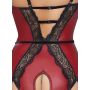 Verras je partner met het dragen van de Abierta Fina Kanten Ouvert Body - Rood en ga een spannend nacht tegemoet samen. De Abierta Fina Kanten Ouvert Body - Rood heeft een matte look, getailleerd model en zwarte kanten inzetstukken voor net een beetje extra spice. Dankzij de tailleband wordt je zandloper figuur extra benadrukt. De zilveren kettingen zijn afneembaar evenals de verstelbare jarretelbandjes. Combineer de Abierta Fina Kanten Ouvert Body - Rood met een paar hoge hakken en je bent klaar voor de nacht.