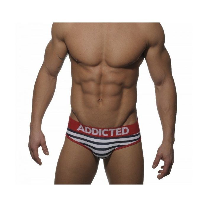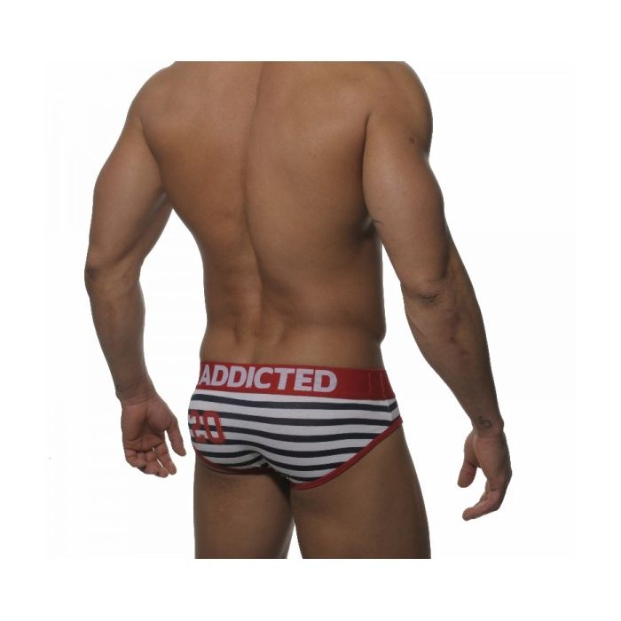 Met het dragen van de AD141 Sailor Brief van Addicted heb jij gauw 'in ieder stadje een ander schatje' en geef je je zelfvertrouwen een boost. Het is een low-cut square model dat zeer comfortabel zit doordat Addicted gebruik heeft gemaakt van de beste materialen. Het streepjespatroon in navy blauw met wit en de rode accenten maken deze brief helemaal af. Het Addicted logo is zowel aan de voorkant als aan de achterkant aangebracht op de rode tailleband. Voel je super sexy en trek de aandacht met deze Sailor Brief van Addicted.