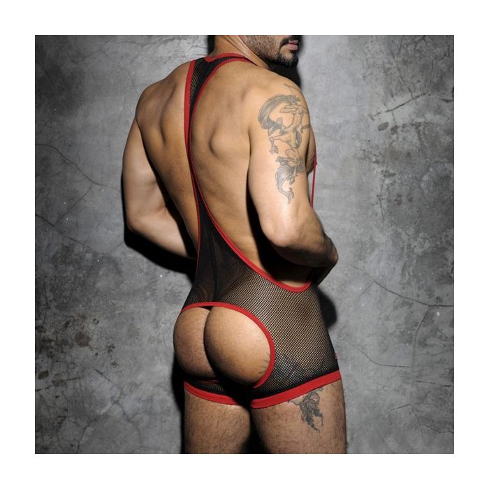 Dit sexy onesie is ontworpen voor de avontuurlijke geest die houdt van een stevige stoeipartij. Gemaakt van zacht, stretch mesh, biedt het een nauwsluitende en comfortabele pasvorm die je de vrijheid geeft om te bewegen zoals jij dat wilt. Het semi-transparante micro-mesh laat je lichaam op een verleidelijke manier zien, waardoor je zelfvertrouwen een flinke boost krijgt. De zwarte mesh randen zijn afgewerkt met zachte stretch zomen in een frisse rode kleur, wat zorgt voor een stijlvolle en gedurfde uitstraling.