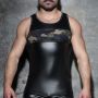 Dit strak aansluitende, mouwloze shirt heeft een unieke rubber look en feel die niet alleen opvalt, maar ook een gedurfde statement maakt. Het licht rekbare materiaal omarmt je gespierde torso perfect, waardoor al je spieren prachtig tot hun recht komen. De matte glans van het shirt accentueert je vormen en zorgt ervoor dat je er altijd op je best uitziet.