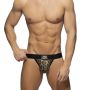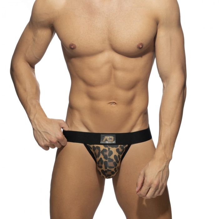 Deze jockstrap is niet alleen ontworpen voor een perfecte pasvorm, maar ook om je zelfvertrouwen een boost te geven. Het opvallende leopardprintpatroon in verschillende tinten zorgt ervoor dat je zeker de aandacht trekt, terwijl de plain zwarte tailleband en de bijpassende zwarte linten een gedurfde, contrasterende uitstraling bieden. Het AD-siliconenlogo, strategisch geplaatst in het midden van de tailleband, voegt een vleugje luxe toe aan dit gedurfde ontwerp.