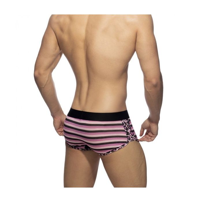 De mosterdgele strepen en de opvallende panterprint op de buidel en zomen maken deze boxershort niet alleen functioneel, maar ook een echte eyecatcher. De elastische tailleband, met zijn glanzende zwarte afwerking en het rubberen Addicted logo, voegt een extra vleugje stijl toe.