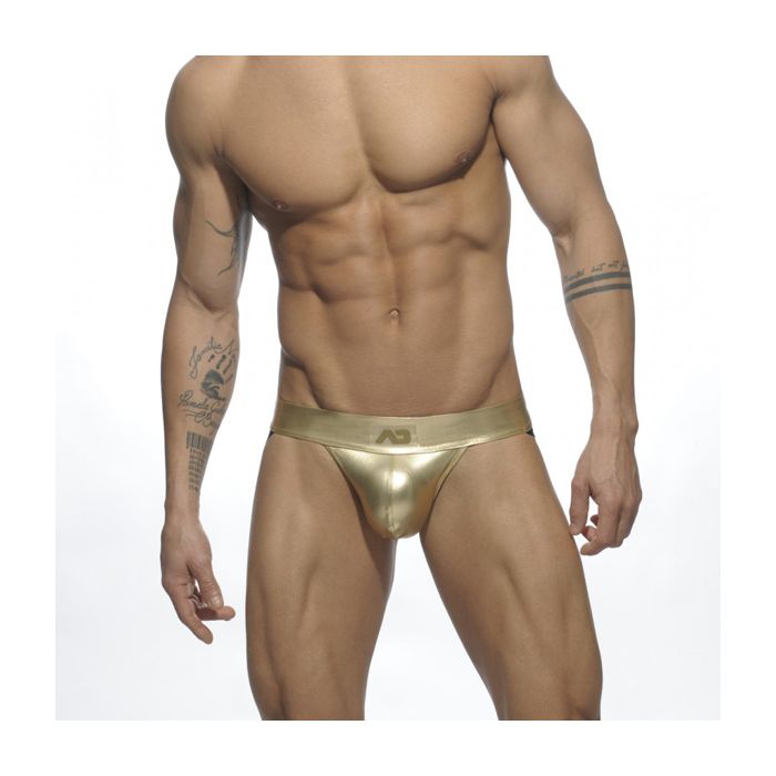 Deze opvallende jockstrap is niet alleen een lust voor het oog, maar ook een statement piece dat jouw zelfvertrouwen een flinke boost geeft. Het glinsterende metallic goud design zorgt ervoor dat je in elke situatie de aandacht trekt. Met een lage taille en een open achterkant accentueert deze jockstrap jouw mannelijke vormen op een verleidelijke manier, waardoor je je extra sexy voelt.