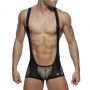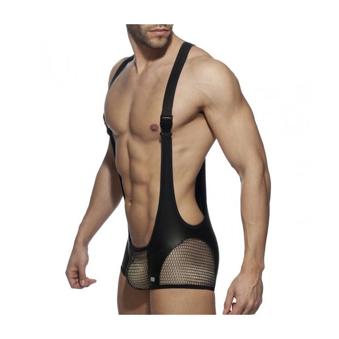 Dit opvallende kledingstuk is gemaakt van zwart stretchmateriaal dat niet alleen een spannende lederlook biedt, maar ook perfect aansluit op je lichaam voor een flatterende pasvorm. De unieke buidel en de delen op de dijen zijn gemaakt van 3D glitter mesh met een grof gatenstructuur, waardoor je een gedurfde en verleidelijke uitstraling krijgt. Het luchtige mesh laat niets aan de verbeelding over en zorgt ervoor dat je je zelfverzekerd voelt, of je nu op de dansvloer staat of een feestje viert.