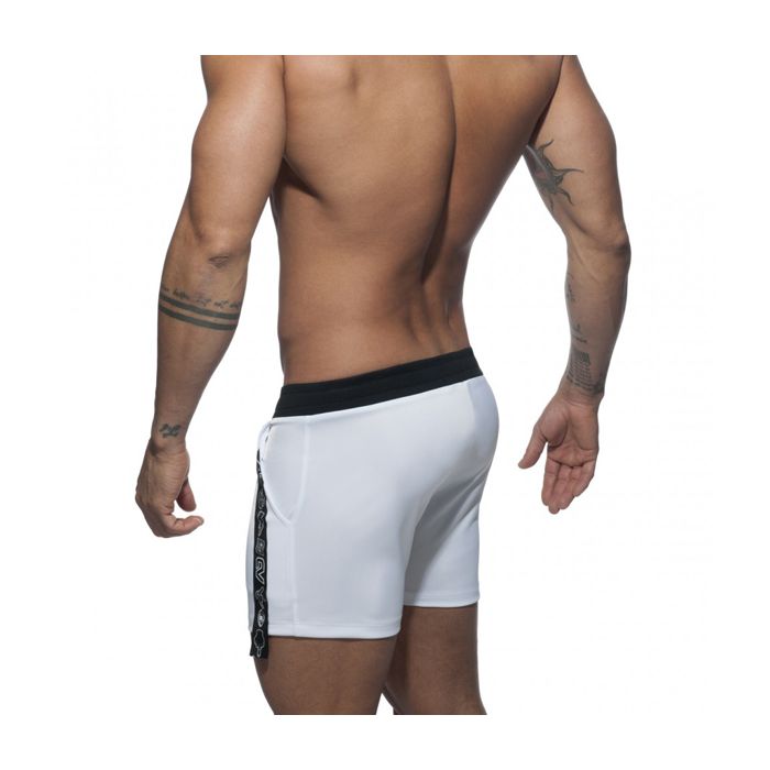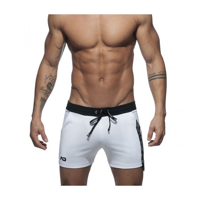 Dan is de Printed Tape Short in het wit van Addicted een must-have voor jouw garderobe! Deze short is vervaardigd uit een zachte en flexibele stof die snel droogt, waardoor je je altijd fris en comfortabel voelt, of je nu aan het sporten bent of gewoon lekker ontspant. De zwarte tailleband met handige rijgveter zorgt voor een perfecte pasvorm, zodat je je geen zorgen hoeft te maken over het afzakken tijdens je activiteiten.