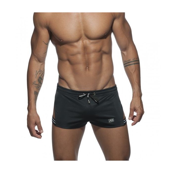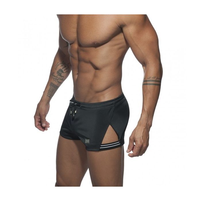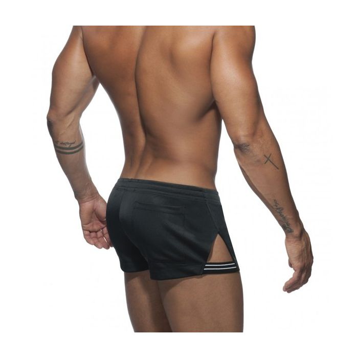 De Side Stripe Short - Zwart van Addicted is een heerlijke korte broek om in te sporten. Het korte en lage model geeft jou de bewegingsvrijheid die jij tijdens het sporten wenst. In de tailleband is een rijgveter gezet om het broekje goed aan te snoeren. De driehoekige uitsparingen met band geven een unieke look.