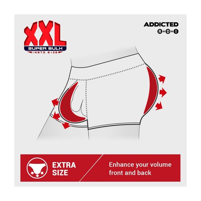 De XXL Sportive Brief - Navy van Addicted heeft een lage elastische tailleband, een sportief design en is gemaakt van zachte en soepel stof en afgewerkt met details van sportief mesh. En nu de meest belangrijke aspecten van deze slip: De slip heeft een uitneembare Pack-Up vulling voor een push up effect, die tot 2 maten vergroot en waardoor jouw jonge heer zeker op zal vallen. Naast de Pack-Up is de slip aan de achterkant voorzien van uitneembare Back-Up vullingen, waardoor jouw kontje er nog geiler uit zal zien.