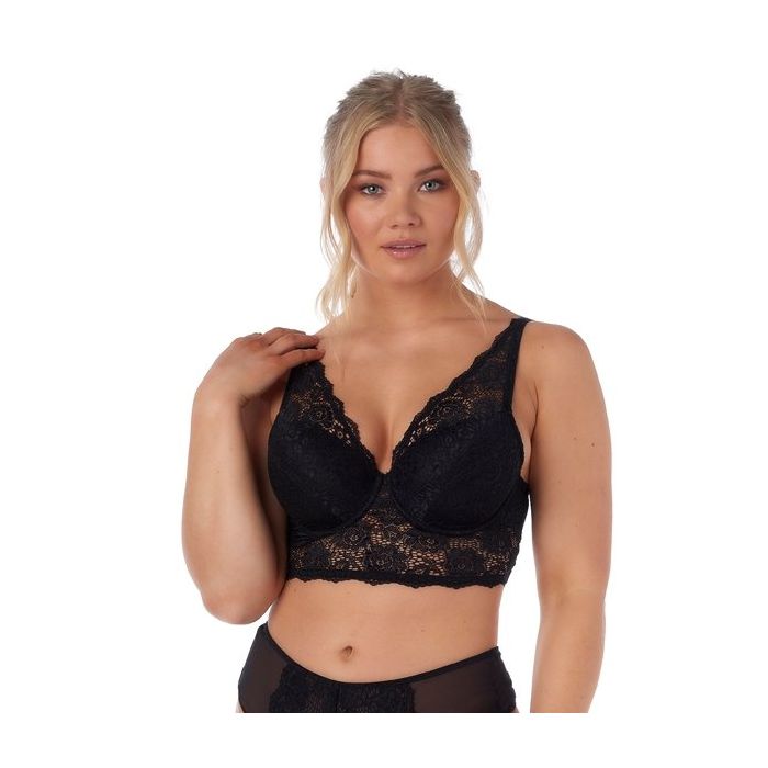 De Fabienne Longline BH is een bh met voorgevormde beugel cups met een royale pasvorm geschikt voor grote cupmaten. De cups zijn overtrokken met stretch kant met een patroon van bloemen voor een romantisch uiterlijk. Het kant loopt boven de cups schuin richting de verstelbare schouderbandjes, waardoor een charmante druppelvorm ontstaat.