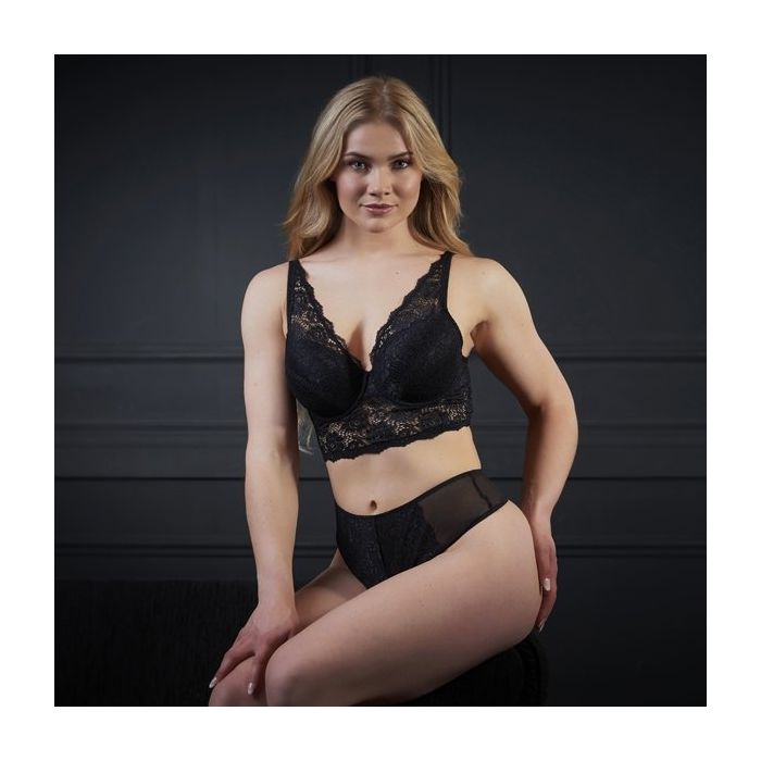 Draag de Fabienne Longline BH - Zwart met de bijpassende hoge string voor een complete sexy lingerie set!