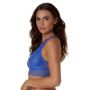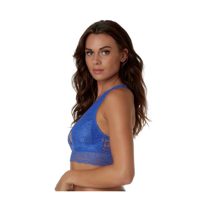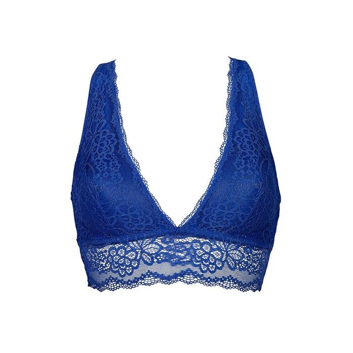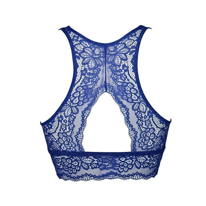 De halter top heeft een elegante V-hals en gevoerde cups zonder beugels. Onder de cups door loopt een elastisch randje die zorgt voor de juiste steun. Vanaf de elastische band loopt het prachtige kant nog een klein stukje door.