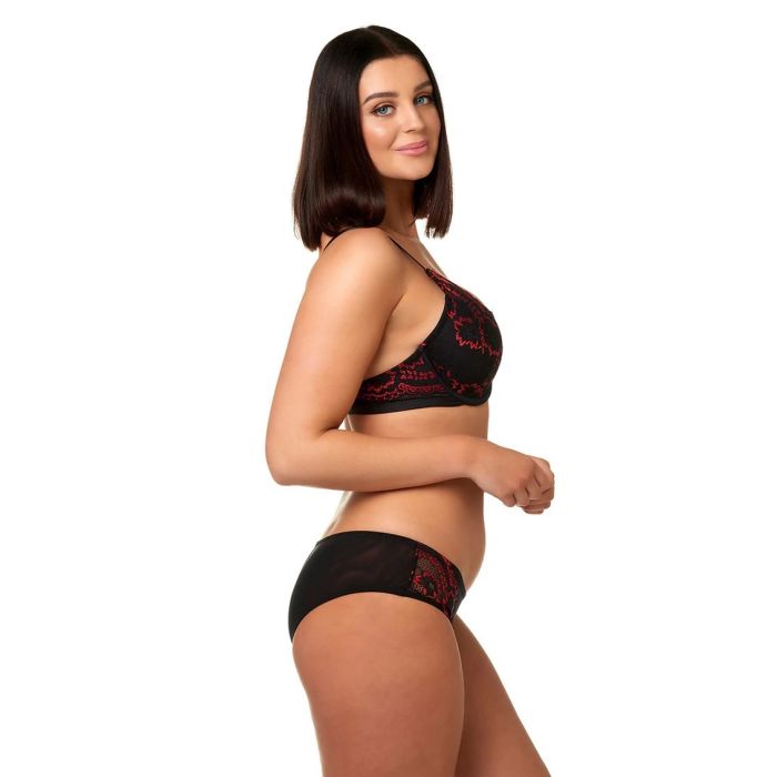 De After Eden Naomi Hipster is een geweldige aanvulling op je spannende lingerie collectie. De hipster heeft rode accenten gemaakt van kant waardoor de hipster een speelse uitstraling krijgt. Het rode kant komt mooi naar voren door de zwarte ondergrond. Combineer deze spannende hipster samen met de bijpassende beha voor een geweldige lingerie look.