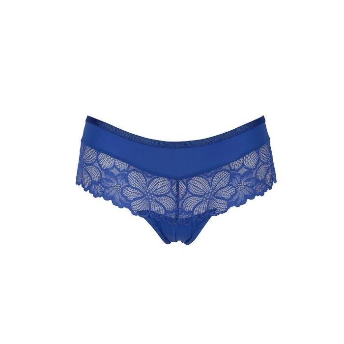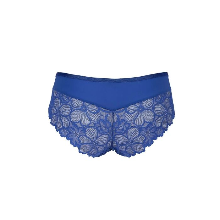 Maak je outfit compleet met deze prachtige hipster van het merk After Eden, die perfect aansluit bij de elegante 'Texas' longline beugelbh. Deze hipster is uitgevoerd in dezelfde mooie blauwe kleur als de bh en biedt zowel comfort als stijl. Het fijne micro materiaal en het sierlijke bloemenkant zorgen voor een luxueuze uitstraling die perfect past bij de bh. De soepele stof zorgt voor een comfortabele pasvorm, terwijl het kant een vleugje vrouwelijkheid toevoegt aan de hipster.