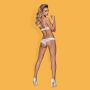 De set is gemaakt van zachte materialen van fijne kwaliteit voor een romantische en verleidelijke aanblik. De cups zijn gemaakt van mesh en zijn voorzien van ondersteunende beugels. Het mesh komt terug in de string en beiden zijn met sierlijke bloemenmotief afgewerkt. De string is open zodat jouw meest intieme zone makkelijk toegankelijk is.