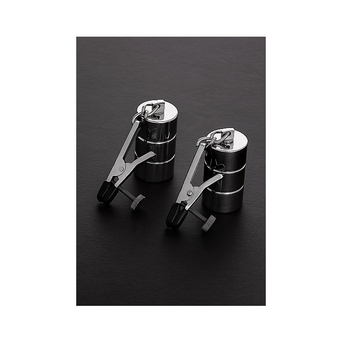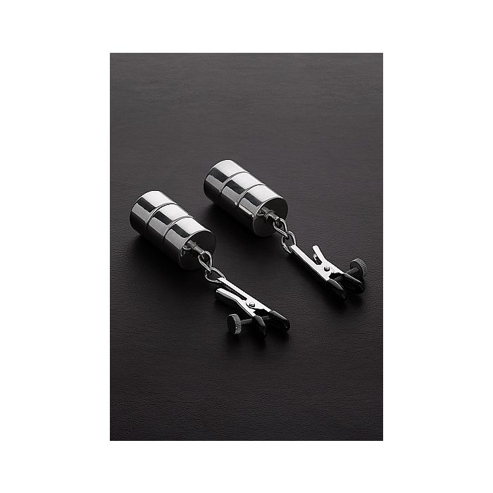 Stoere, robuuste Tepelklemmen met Alligatorklem en zwarte, siliconen topjes die verwondingen van de huid voorkomen. De gewichten zijn afneembaar en daardoor kun je heel eenvoudig zelf bepalen hoeveel gewicht je aan je tepels wil hangen. Met de schroefjes aan de zijkant van de klemmen kun je de druk op jouw tepels heel nauwkeurig doseren en vastzetten.