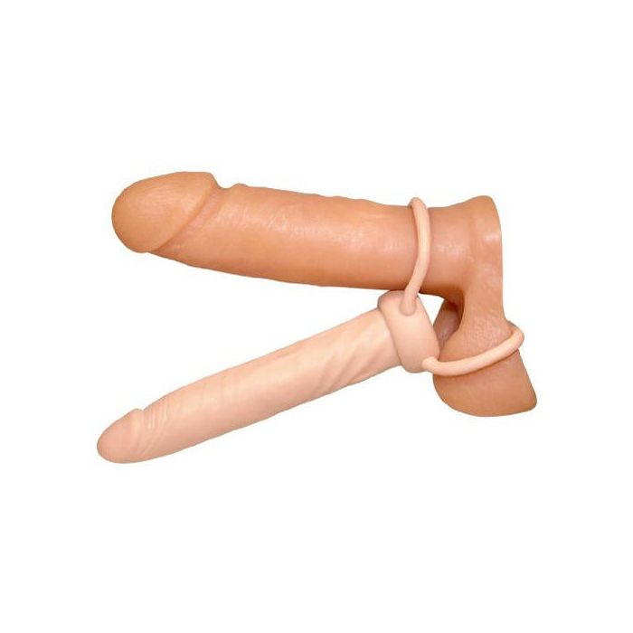 Penetreer je partner gelijktijdig van achteren. Je schuift de 2 ringen om de penis en balzak, en je kunt je partner gelijktijdig in 2 liefdes gaatjes verwennen, je kunt de flexibele dildo natuurlijk ook los gebruiken voor stimulatie.