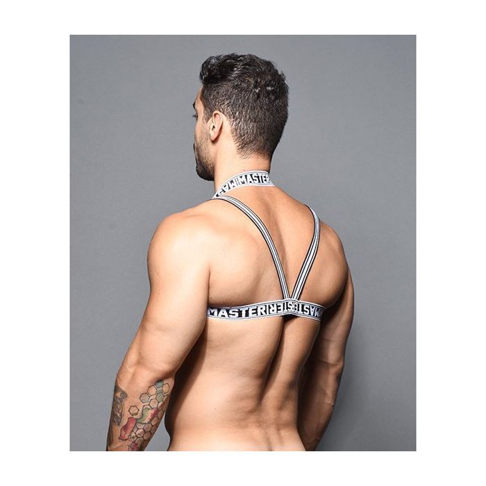 Het Andrew Christian Master Harnas - Zwart/Wit is een spannend harnas met meesterlijk design. Het harnas is gemaakt van diverse banden van soepele kwaliteit. De banden ziten nauwsluitend om de borst en schouders. Hierdoor lijkt jouw bovenlichaam lekker breed.