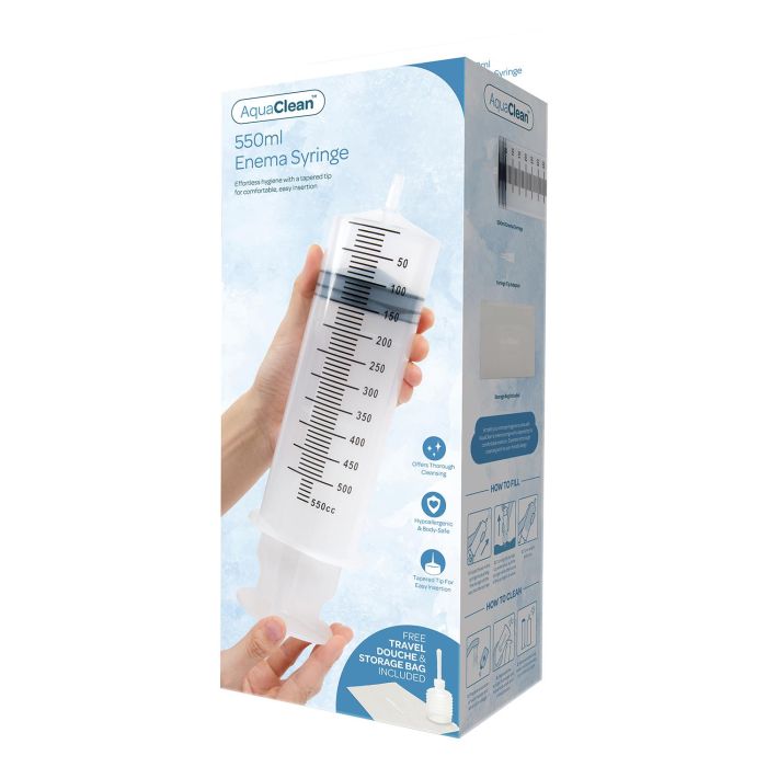 Maak intieme hygiëne eenvoudig en effectief met de AquaClean Nema Klysmaspuit van 550 ml. Deze gebruiksvriendelijke klysmaspuit is ontworpen met een taps toelopende punt, waardoor inbrengen moeiteloos en comfortabel is. Met een inhoud van 550 ml biedt deze spuit voldoende capaciteit voor een grondige reiniging, zodat je je altijd fris en schoon voelt. De set wordt geleverd met een compacte, reisvriendelijke douche en een handige opbergtas, perfect voor onderweg. Of je nu thuis bent of op reis, met AquaClean prioriteer je jouw hygiëne zonder gedoe. Geef jezelf de zorg en netheid die je verdient!