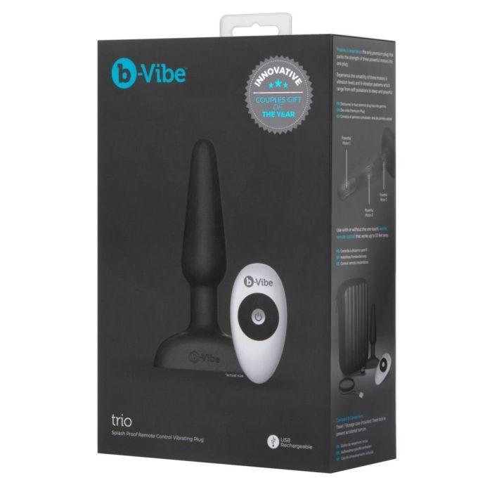 De Trio Buttplug met afstandsbediening van b-Vibe is een vibrerende buttplug welke je zal verrassen met aangename anale stimulatie. Deze vibrerende buttplug onderscheidt zich van andere vibrerende buttplugs doordat deze plug 3 motoren heeft en dus meer vibratie standen. De motoren zijn geplaatst in de top, in de schacht en in de onderkant voor een goed bereik van alle gevoelige plekken in en om de anus. Deze buttplug wordt geleverd met een afstandsbediening wat de plug geschikt maakt voor koppels om elkaar heerlijk mee te plagen en op te winden op een afstand van maximaal 9 meter. Uiteraard kun je ook heerlijk spelen zonder de afstandsbediening.