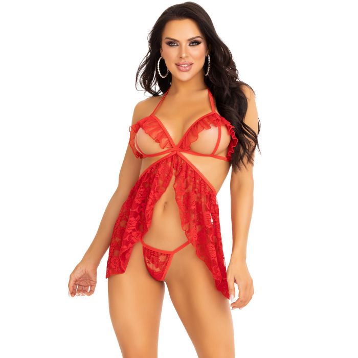 Babydoll & g-string Flywaway - Rood