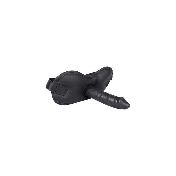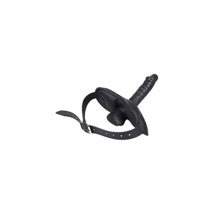 Zwart leren ball gag met dildo er aan bevestigd. Sommige speeltjes zijn nu eenmaal niet voor beginners. Alhoewel, misschien ook wel. Deze ball gag met dildo past in elk geval helemaal binnen het serieuzere sm spel. Voor diegene die wat verder willen gaan dan de geijkte paden met bondage is deze mondknevel zeer geschikt. De zwarte mondknevel hoort thuis binnen de wereld van dominantie en onderdanigheid, van bevelen geven en opvolgen. Bind jouw partner deze knevel voor en geniet van de dildo of draai de rollen eens om!