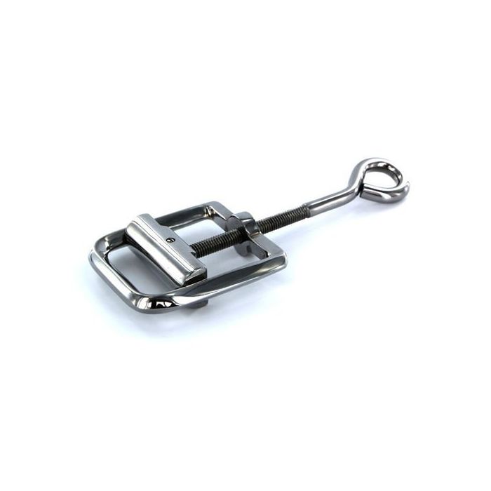 Hoogwaardige klem welke naar wens aan te draaien is. Als je van serieuze penisbondage houdt dan is dit je ding. Glanzend, groot en imposant, een balzakklem voor echte mannen. Deze schitterende klem heeft een totale lengte van 25 centimeter als deze volledig is uitgedraaid. De opening van de klem is 6,5 centimeter bij 6 centimeter, je kan hem zo strak draaien als je zelf wilt! Door de handige opening aan de schroef bestaat de mogelijkheid om hier gewichten aan te hangen. Hierdoor wordt de klem nog intenser.