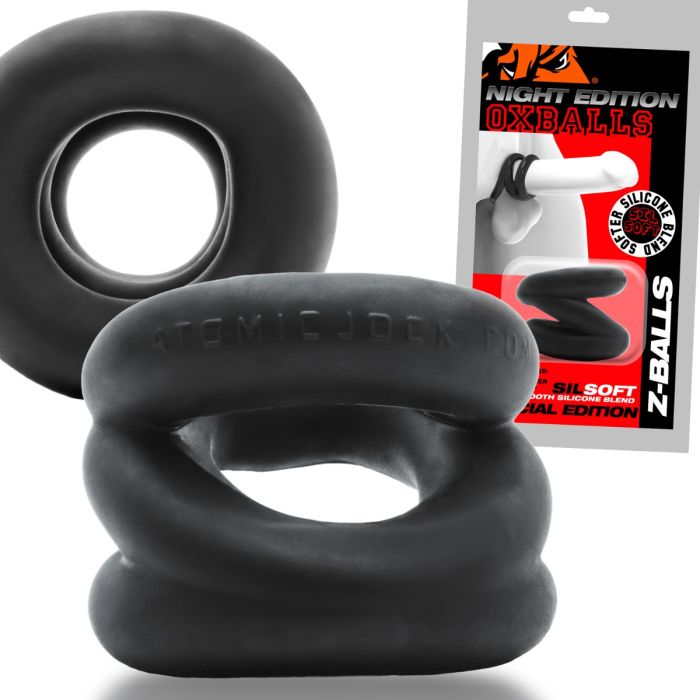 De Z-BALLS Ballstretcher Night Edition is een revolutionaire multifunctionele cock- en ballring die je spel naar een hoger niveau tilt. Deze speciale editie van OXBALLS is ontworpen met drie unieke zig-zag ringen die perfect passen om zowel je schacht als je ballen. Gemaakt van een luxe rubberachtige SILSOFT siliconenmix, biedt deze ring een ongeëvenaarde zachtheid en flexibiliteit, waardoor je een sensationele ervaring beleeft. De fluweelzwarte kleur voegt een vleugje elegantie toe aan je intieme momenten, terwijl het ontwerp je een gedurfde uitstraling geeft.