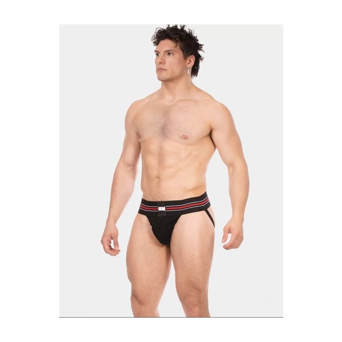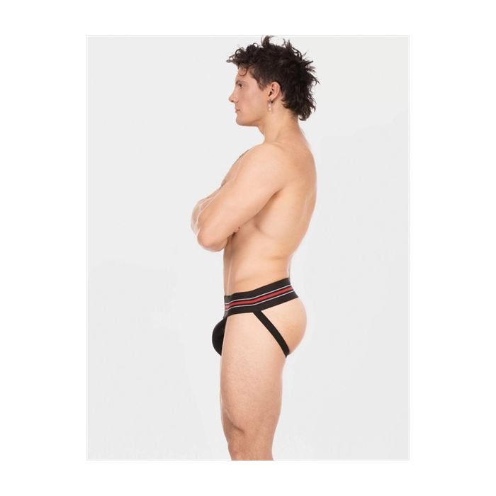 De opvallende dikke zwarte tailleband met een voorgecentreerde rubberen Barcode-logopatch laat zien dat je kiest voor kwaliteit en stijl. De elastische beenbanden zijn perfect ontworpen om je kont te accentueren, met een lift en structuur die je zelfvertrouwen een boost geven. Of je nu op de dansvloer staat of je in een intieme setting bevindt, deze jockstrap blijft op zijn plek en biedt de ondersteuning die je nodig hebt.