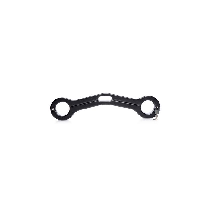 Het apparaat is gebogen om perfect in de holte van het kruis te passen, terwijl de ballen naar voren worden uitgerekt. Hierdoor wordt een vicieuze ruk toegepast wanneer de onderdanige partner probeert zijn handen te bewegen, waardoor ze zichzelf niet kunnen beschermen tegen jouw dominantie.
