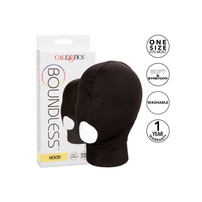 Dit BDSM Masker Boundless Hood van CalExotics is ideaal voor koppels die willen experimenteren met zintuiglijk plezier en spannende, erotische avonturen willen beleven. Het masker is gemaakt van ademende stof, een rekbare pasvorm en een ontwerp dat het zicht beperkt. Het luxueus zachte masker creëert een gezichtsbeperkend gevoel dat de gevoeligheid verhoogt.