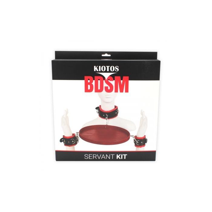 De BDSM Sevant Set van het merk Kiotos is ontworpen voor degenen die graag rollenspellen spelen als bediende of ober. Deze unieke set bevat een rood houten dienblad, handboeien en een halsband die allemaal kunnen worden verbonden om een dienende oberpositie te creëren, vergelijkbaar met een spreidstang maar met de extra mogelijkheid om drankjes en andere items te serveren.