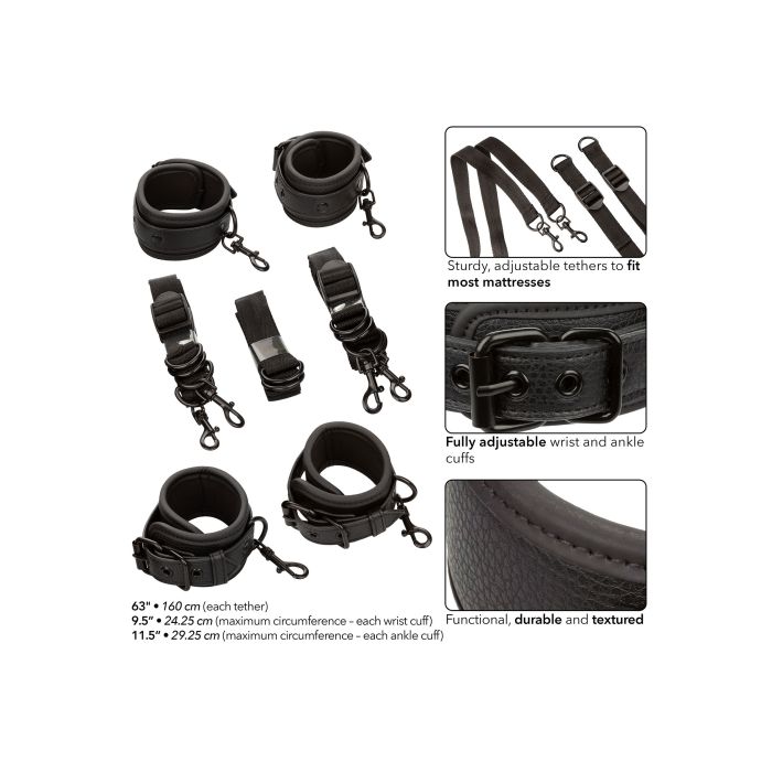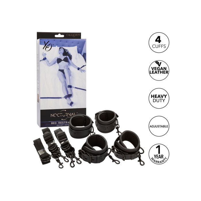 Ontdek de Nocturnal Collection Bed Boeien, een zorgvuldig ontworpen set die de wereld van restraint play toegankelijk maakt voor zowel beginners als ervaren gebruikers. Deze set bestaat uit vier verstelbare boeien, elk uitgerust met veilige gespen die zich aanpassen aan verschillende maten, waardoor comfort en veiligheid voorop staan. De boeien zijn dubbel gestikt, wat niet alleen zorgt voor een verhoogde duurzaamheid, maar ook voor een aangename textuur die de zintuigen prikkelt. De bijgeleverde stevige, verstelbare tethers zijn compatibel met de meeste matrassen en worden aangevuld met een 160 cm connector, wat eindeloze mogelijkheden biedt voor creatieve en spannende opstellingen. Deze veelzijdige set kan eenvoudig worden gedemonteerd tot individuele boeien, waardoor gebruikers de vrijheid hebben om hun spel aan te passen aan hun persoonlijke voorkeuren en ervaringsniveau. De Nocturnal Collection is meer dan een verzameling accessoires; het is een uitnodiging om de grenzen van intimiteit te verkennen en nieuwe dimensies van sensualiteit te ontdekken.