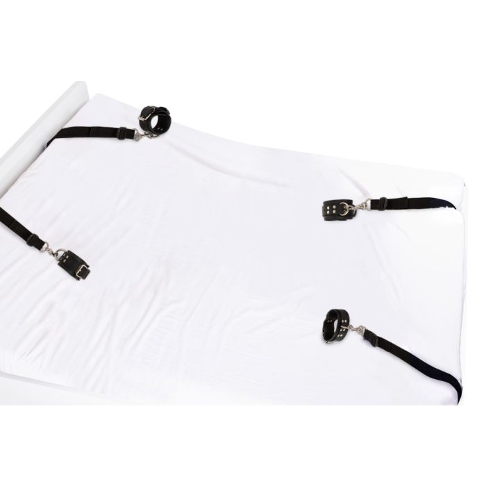 Met deze geweldige Bedboeien set van het merk Zado kan elke bed worden omgetoverd tot een professionele bondage speeltuin. Het H-riemsysteem van verstelbare, scheurvaste singelbanden past onder elke matras. De hand -en voetboeien worden vastgehaakt met 4 karabijnhaken op elk van de riemen.