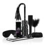 Deze complete set zit boordevol spannende speeltjes die ontworpen zijn om de zintuigen te prikkelen en de passie tussen partners aan te wakkeren. Begin met een zachte aanraking van de tickler en laat de strengen van de flogger over de meest gevoelige plekken glijden voor een sensuele ervaring.