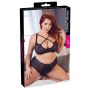Ben je op zoek naar een nieuw lingerie setje en vind je de setjes in plus size maten vaak saai en onvrouwelijk? Met deze prachtige zwarte bh set met bijpassende slip uit de Cottelli Collection is daar absoluut geen sprake van. Plus size en sexy gaan heel goed samen! De kanten bh heeft een geweldig decolleté waar kruislings 2 bandjes over lopen. Hierdoor wordt de aandacht nog meer op jouw prachtige borsten gevestigd. De bh bandjes zijn volledig in maat verstelbaar voor een perfecte pasvorm. De bijpassende slip is een wat langer model en is helemaal in dezelfde stijl als de bh. Draag dit prachtige setje gewoon onder je dagelijkse kleding of verras je partner voor een spannende avond in de slaapkamer..