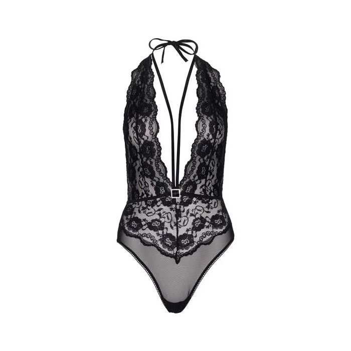 De Bloemen Kant V-Hals Body komt uit de collectie van Leg Avenue. Deze erotische body heeft een halter model en een laag uitgesneden V-hals. Het sierlijke bloemen kant is doorschijnend net als het mesh aan de achterzijde voor een spannend geheel. Vanaf de taille loopt een stijlvol zwart striklint tussen de borsten door naar de nek. Het striklint zit aan een stijlvol ceintuur met glinsterende gesp vast. In deze body zul jij stralen van het sexy zelfvertrouwen.
