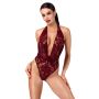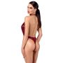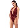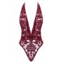 De Kink Royal body van Noir is een must-have voor elke diva die haar sensualiteit wil omarmen! Deze adembenemende body in een rijke bordeauxrode transparantie is versierd met fluweelachtige flockprint ornamenten die je figuur prachtig accentueren. Het ontwerp met een extra diepe watervalhalslijn aan de voorkant en een halternek zorgt ervoor dat je schouders en rug op een spannende manier bloot zijn, perfect voor een avondje uit of een intieme gelegenheid. Dankzij het elastische materiaal en de zachte, soepele afwerking geniet je van maximaal comfort en bewegingsvrijheid, zodat je je zelfverzekerd en sexy voelt, waar je ook bent. Voeg een vleugje luxe toe aan je lingeriecollectie en laat je innerlijke diva stralen met deze onweerstaanbare body!