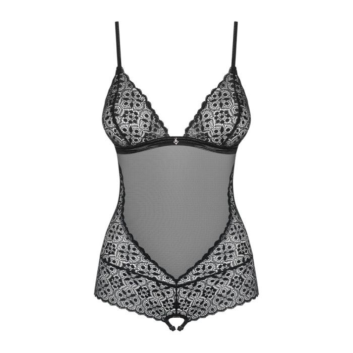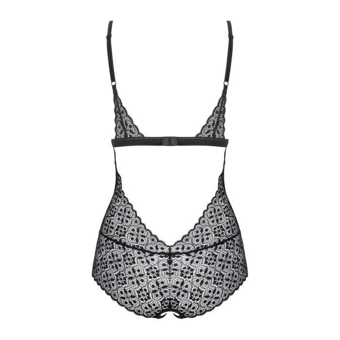 De Opwindende transparantie! Transparante ouvert Shibu body van Obsessive is een verleidelijk en sensueel lingerie stuk. Gemaakt van zwart kant met een tule inzet aan de voorkant, straalt deze body elegantie en verfijning uit. Het materiaal is zacht en elastisch, waardoor het een hoog draagcomfort biedt.
