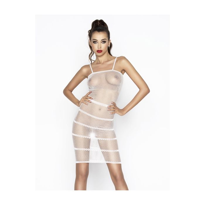 Deze bijzondere bodystocking van Passion heeft een jurk model en is geheel gemaakt van netstof materiaal, zodat al jouw geheimen direct zichtbaar worden. De Bodystocking BS033 Wit is zacht en zit nauwsluitend rond je lichaam waardoor al je vormen goed te zien zijn. In dit jurkje ben jij klaar om je partner eens flink te verleiden.