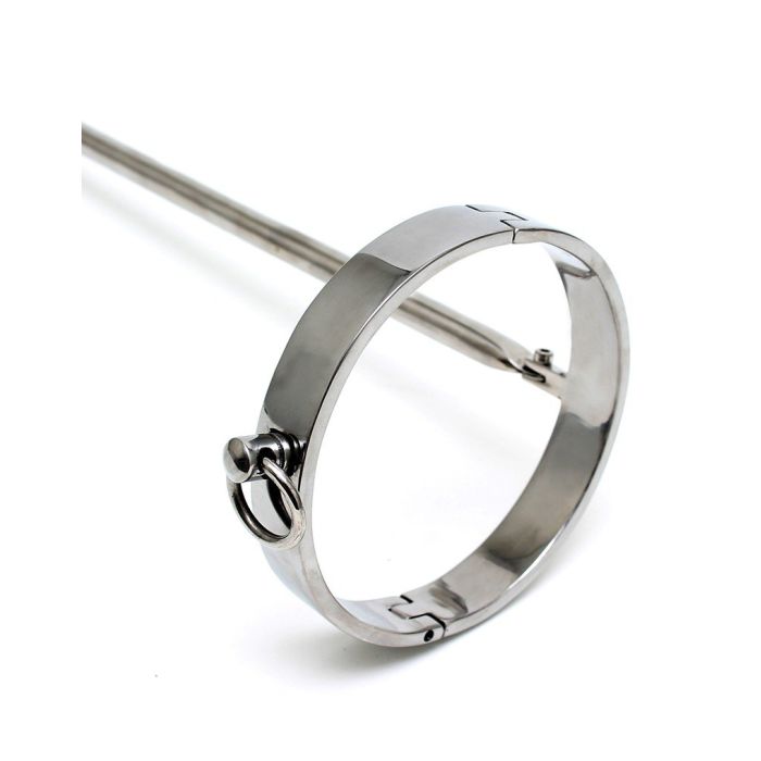 Geniet van super spannende en kinky bdsm spelletjes met deze Rimba bondage haak met halsband! Een bondage haak is een super kinky accessoire en is niet alleen spannend in gebruik, maar ziet er ook spannend uit! Deze bondage haak is gemaakt van sterk roestvrij staal en heeft aan de ene kant een halsband en aan de andere kant een bal. De bal kan zowel vaginaal als anaal ingebracht worden, terwijl de metalen staaf ervoor zorgt dat je maar in één positie kunt blijven staan of liggen. De staaf is in lengte verstelbaar zodat hij voor iedereen een goede pasvorm heeft en op precies de juiste plekken komt. Laat de meest ondeugende fantasieën werkelijkheid worden met deze Rimba bondage haak met halsband.