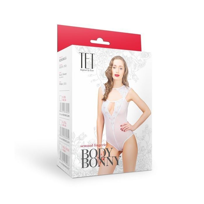 In de Bonny Body - Wit van Tet Lingerie zie jij er overrompelend sexy uit! Deze body is gemaakt van heerlijk zacht en soepel tule en kant van de hoogste kwaliteit. Rond het decolleté en op de rug zijn uitdagende keyhole uitsparingen aangebracht. Rond de schouders is hierdoor een elegant kraagje gevormd. Het kruisje is gevoerd met katoen en voorzien van een handige haaksluiting.