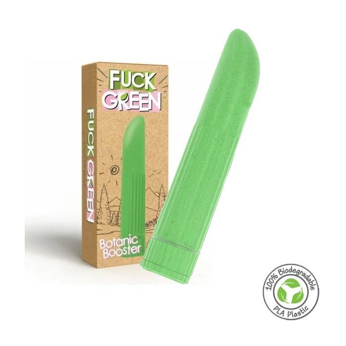 De Botanic Booster mini vibrator is gemaakt van biologisch afbreekbaar plastic. Het merk Fuck Green hoopt met het maken van 'groene' sextoys een bijdrage te kunnen leveren voor een beter klimaat. De vibrator is waterproof, bodysafe en voorzien van multispeed vibraties. Met een simpele bediening via het draaiknopje aan de onderzijde kan iedere vrouw deze mini vibrator moeiteloos bedienen. Naast de vibrator is ook de verpakking milieuvriendelijk, namelijk, gemaakt van karton.