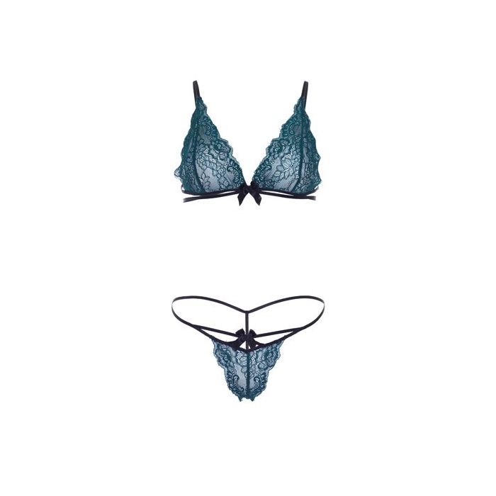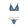 Deze teal blauwe lingerie set van leg Avenue is een erotisch hoogstandje! De Bralette BH en String - Blauw/Groen is een prachtig setje. De set is gemaakt van luxe bloemen kant met geschulpte randjes. Het blauw-groene kant is afgewerkt met zwarte bandjes voor een stijlvol contrast.