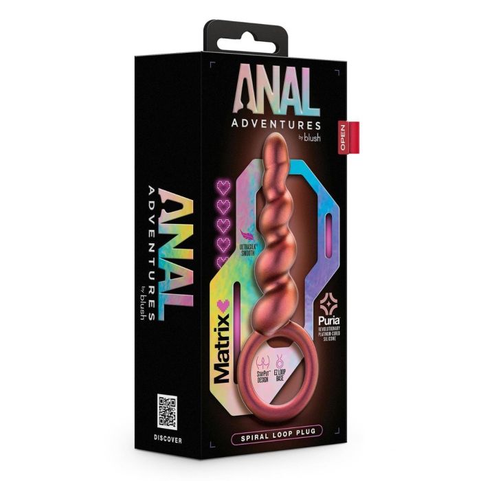 De Buttplug Matrix Spiral Anal Adventures van Blush heeft 5 prominente wervelingen die langzaam groter worden voor heerlijke sensaties en massage tijdens gebruik. Door de siliconen lus aan de basis is het inbrengen eenvoudig en kan de plug gemakkelijk verwijderen. De Spiral Plug heeft zijdezachte UltraSilk en is gemaakt van Puria met platina uitgeharde siliconen, waardoor hij lichaamsveilig is en vrij van ftalaten, paraffines, geurstoffen en latex. Maak de plug na gebruik goed schoon met toycleaner.
