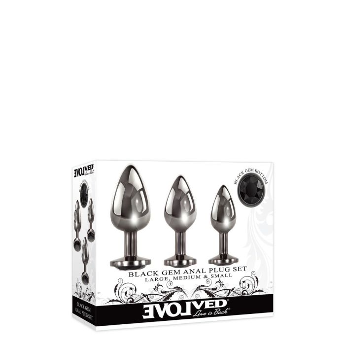 Laat je anaal verwennen met deze Buttplug Set Black Gem van het merk Evolved Novelties. Experimenteer met kleine tot grote maten om de perfecte sweet spot te vinden om de intensiteit van je orgasmes te vergroten. Terwijl je geniet van de heerlijke anale stimulatie, ziet je kontje er prachtig uit door de sprankelende edelsteen. Maak de buttplug na gebruik schoon met een toycleaner.